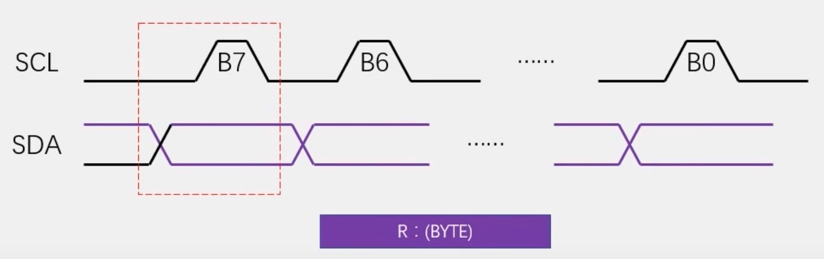 连续调用8次接收一位的时序,依次接收一个字节的8位(低位在前)。