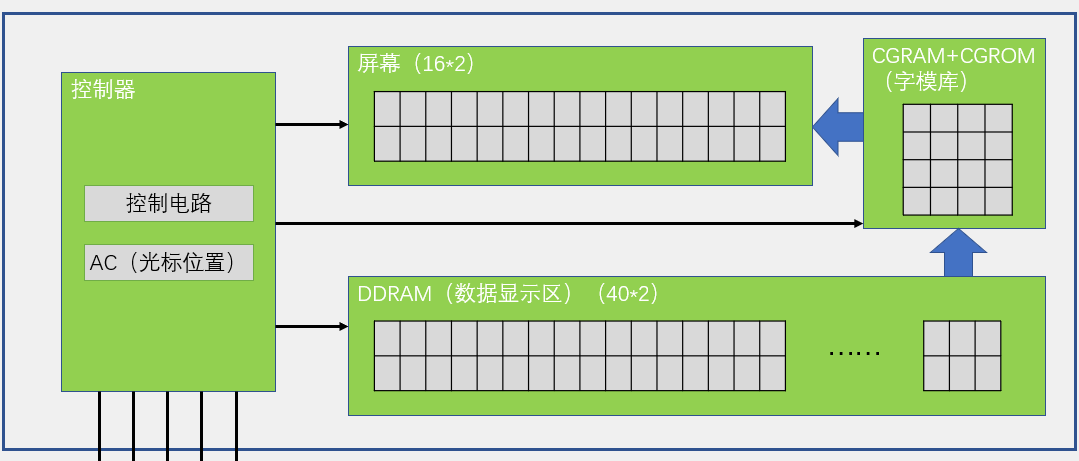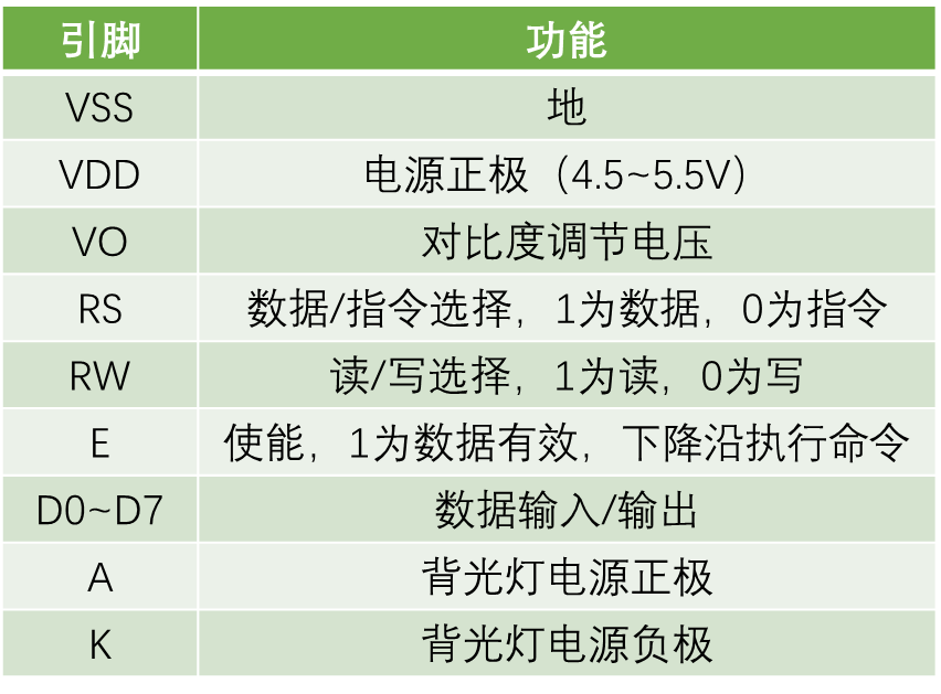 显示容量:16×2个字符,每个字符为5*7点阵。