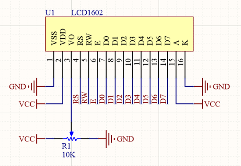 LCD1602(Liquid Crystal Display)液晶显示屏是一种字符型液晶显示模块,可以显示ASCII码的标准字符和其它的一些内置特殊字符,还可以有8个自定义字符。