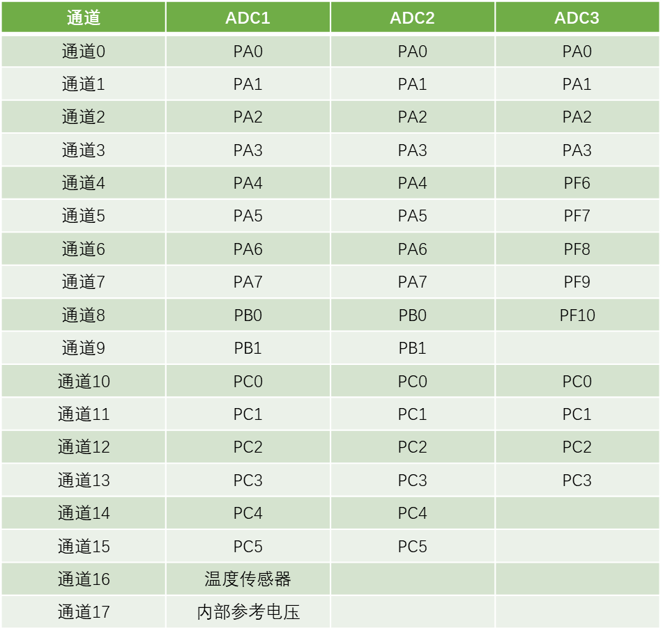 STM32F103C8T6 ADC资源:ADC1、ADC2,10个外部输入通道。