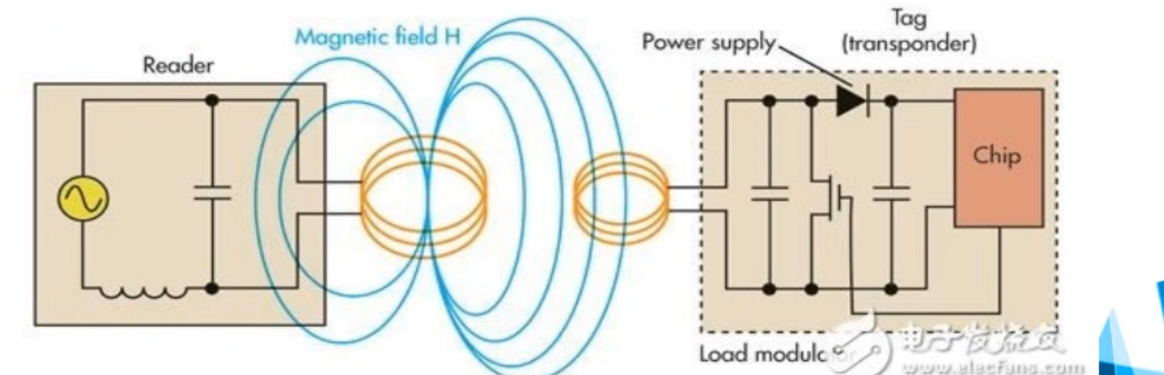 读写器向M1卡发一组固定频率的电磁波,卡片内有一个LC串联谐振电路,其频率与读写器发射的频率相同,在电磁波的激励下,LC谐振电路产生共振,从而使电容内有了电荷,在这个电容的另一端,接有一个单间导通的电子泵,将电容内的电荷送到另一个电容内储存,当所积累的电荷达到2V时,此电容可做为电源为其它电路提供工作电压,将卡内数据发射出去或接取读写器的数据。