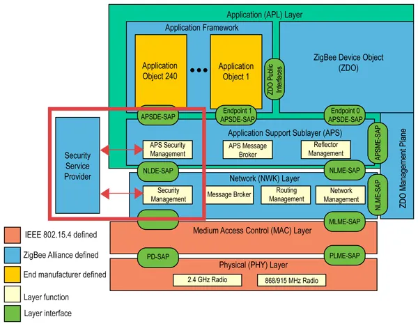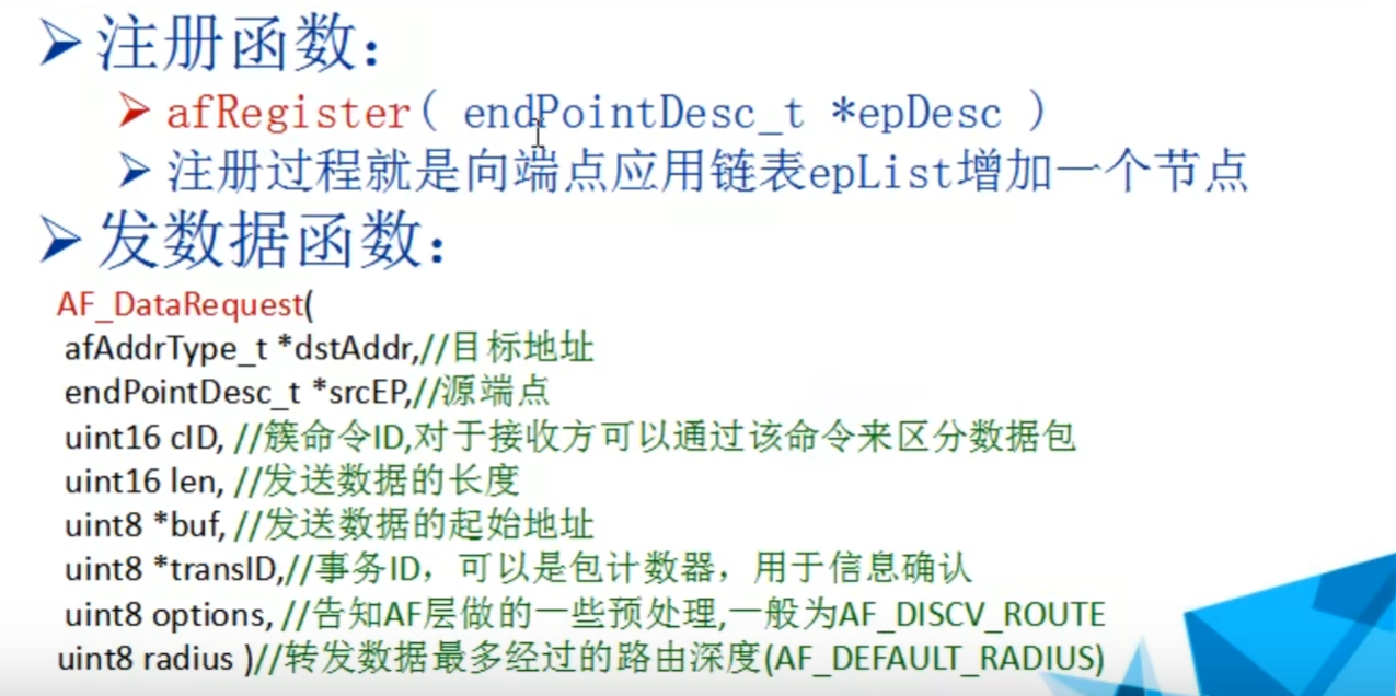 应用层APL:应用框架层AF,以及设备对象ZDO;