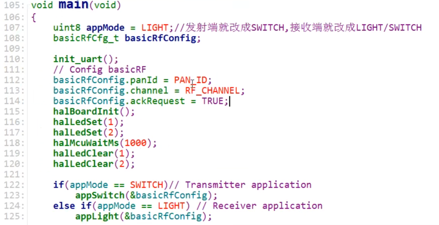 点对点遥控收发数据,主要填充一个结构体:basicRfCfg_t;