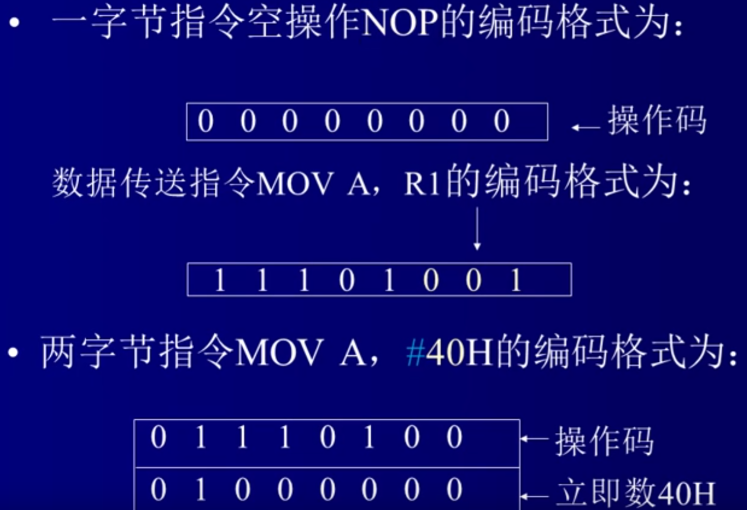 指令编码格式:一条指令表示计算机所完成的某种操作。它通常由操作码和操作数两部分组成。例如: