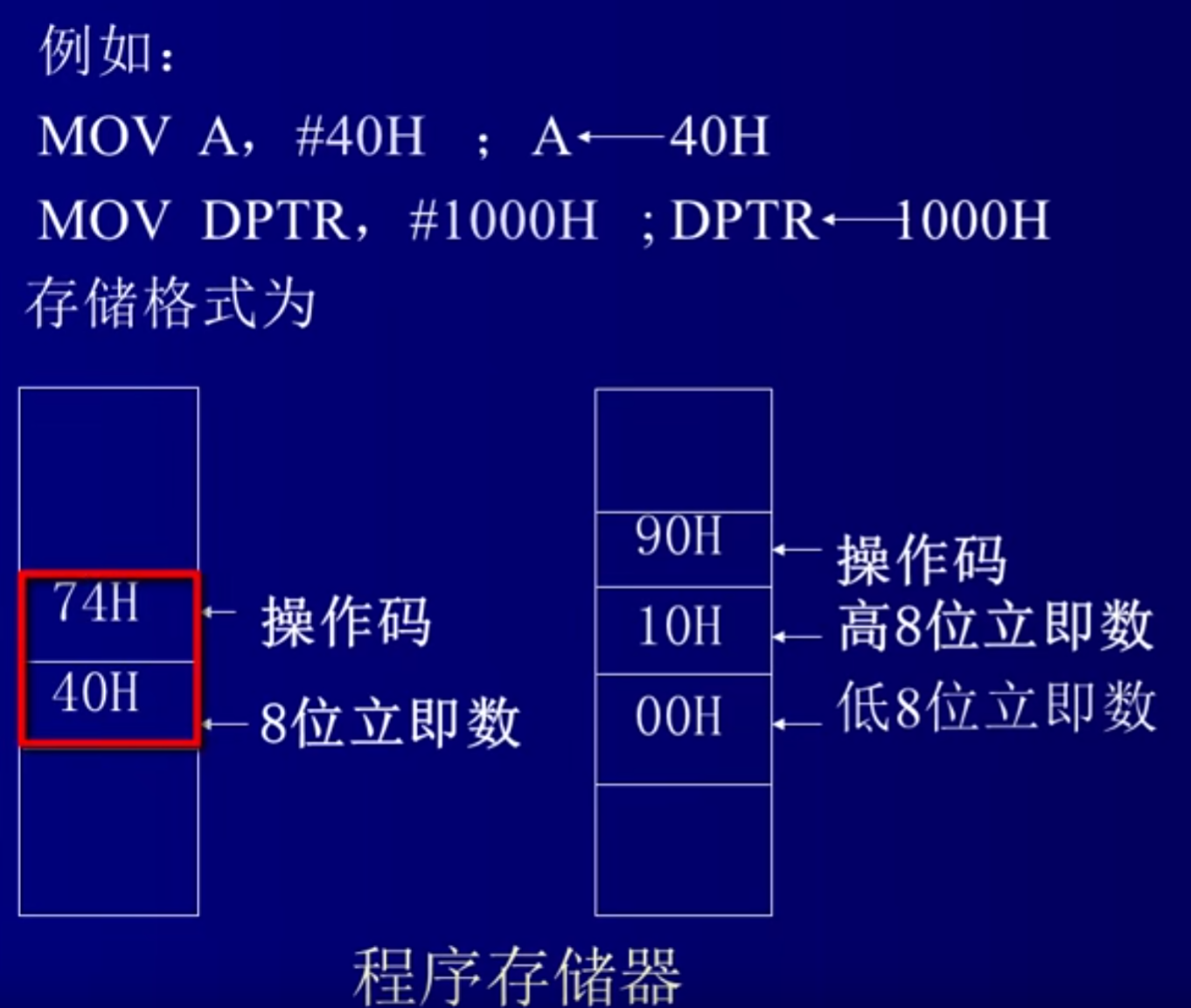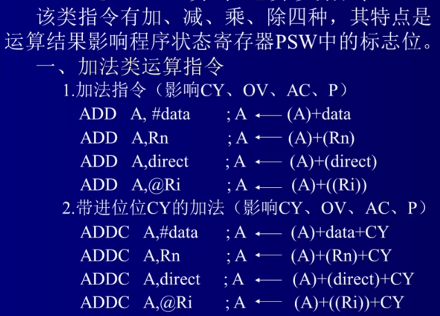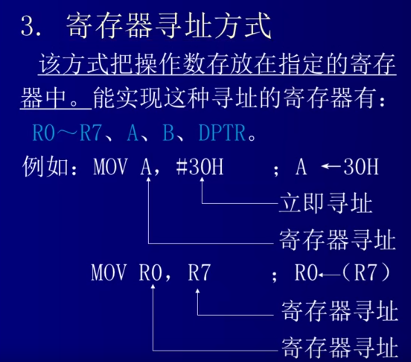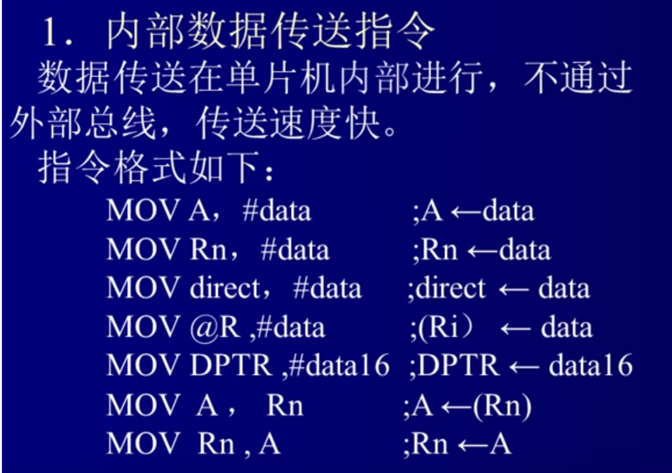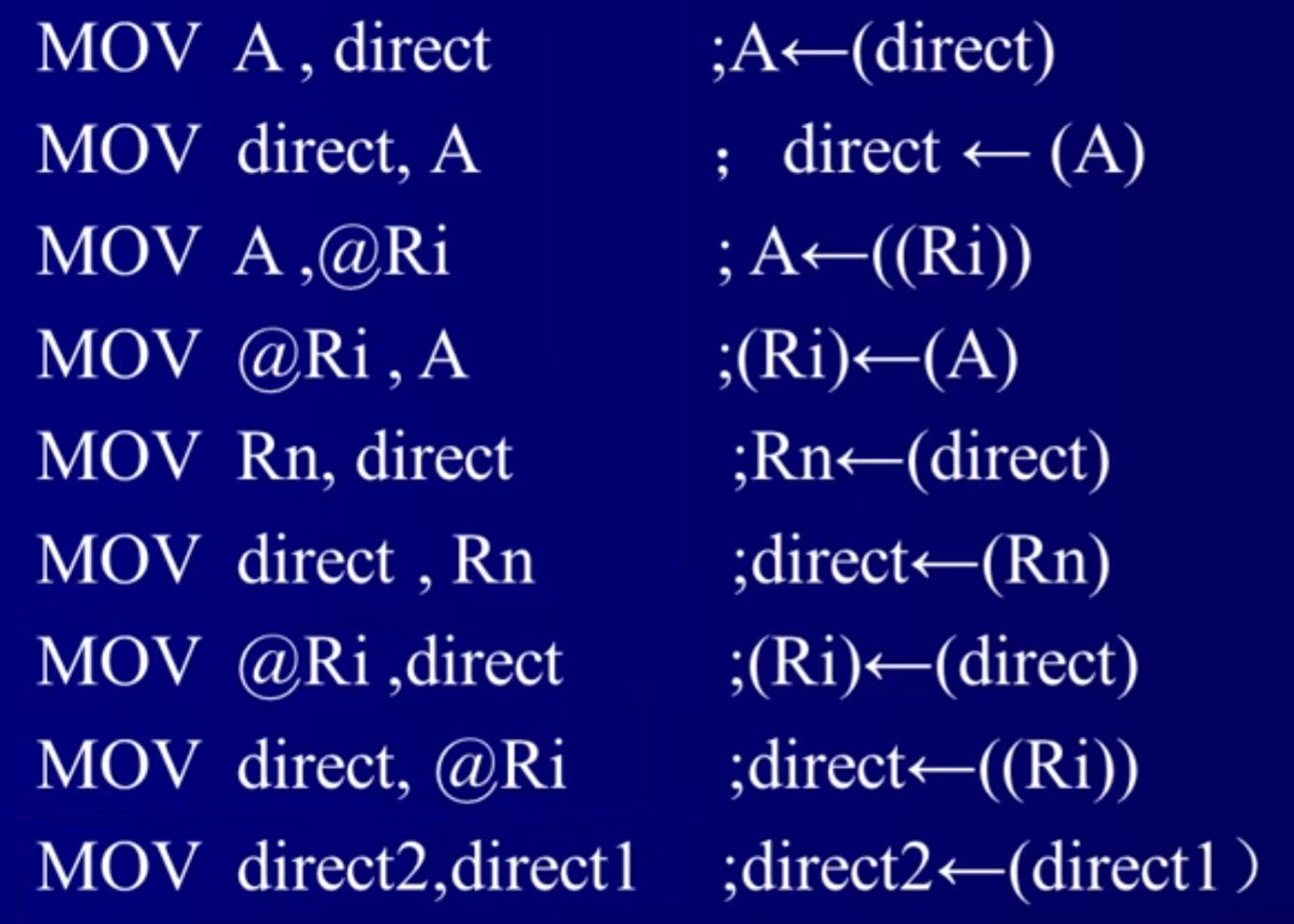 MOV A,R1 //把R1的内容送到A里面。R1、A都是8位寄存器。