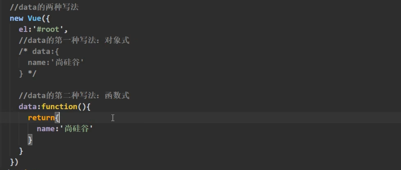 ,以后学习到组件时,data必须使用函数式,否则会报错。