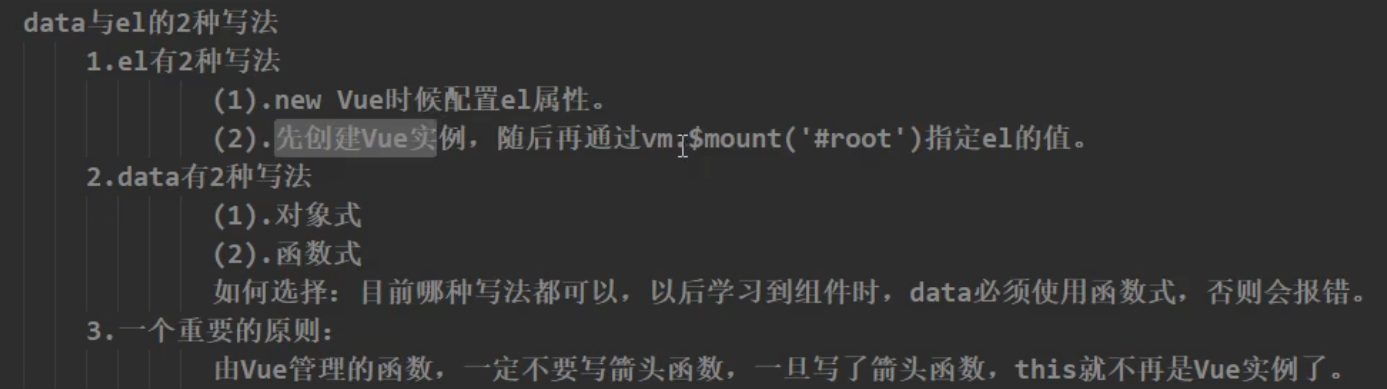 1.el不要写,为什么:最终所有的组件都要经过一个vm的管理,由vm中的el决定服务哪个容器。