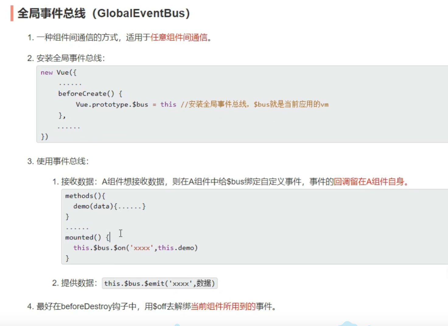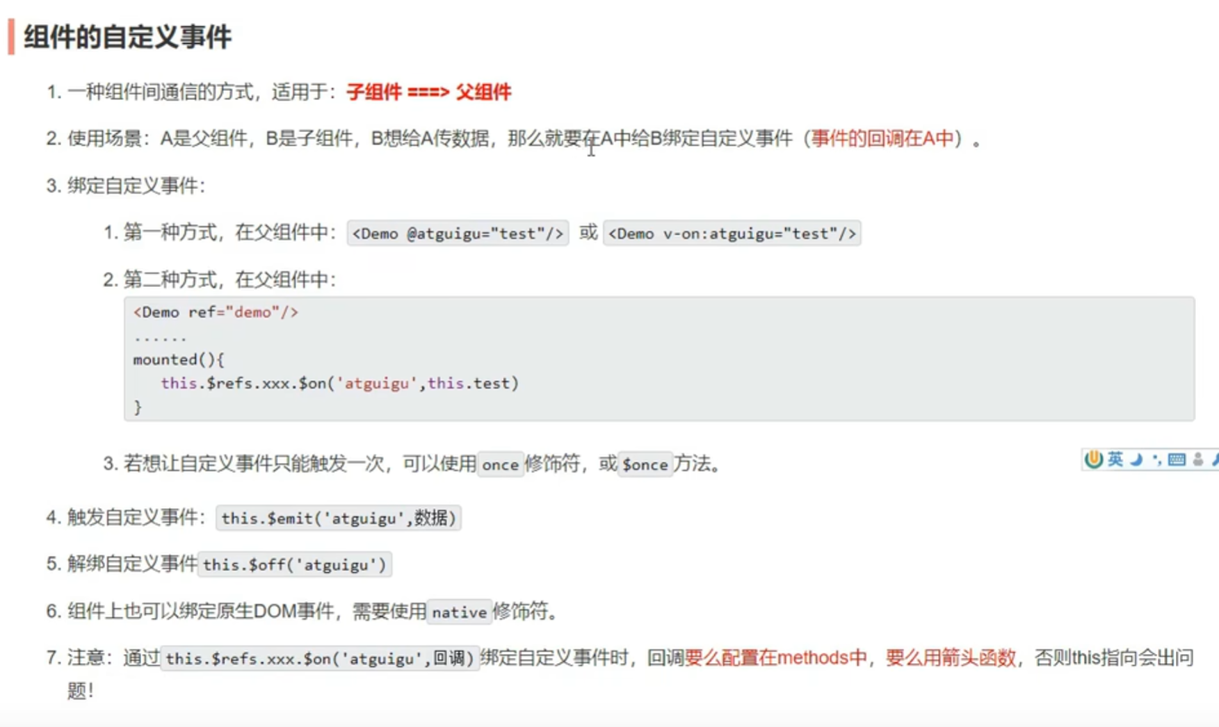 1.使用v-on:xxx或@xxx绑定事件,其中xxx是事件名;