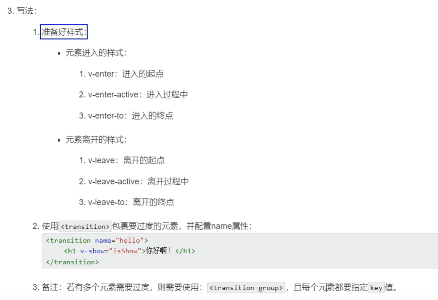 1.作用:在插入、更新或移除DOM元素时,在合适的时候给元素添加样式类名。