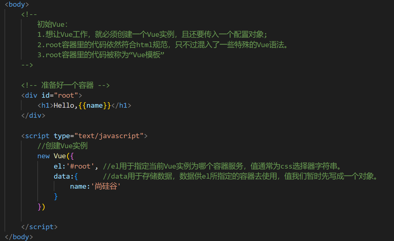 2.root 容器里的代码依然符合 html 规范,只不过混入了一些特殊的 Vue 语法。
