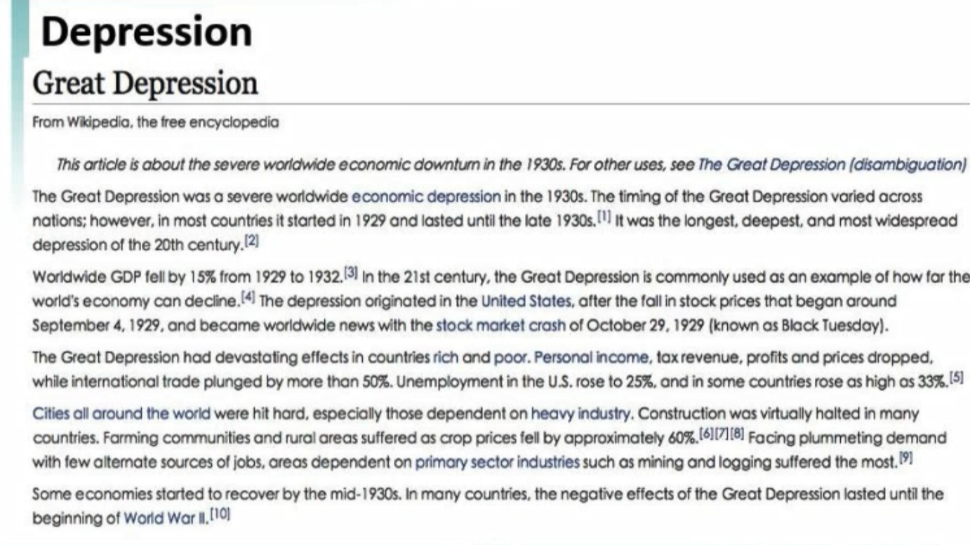 Depression: 1929年10月,美国股市大跌