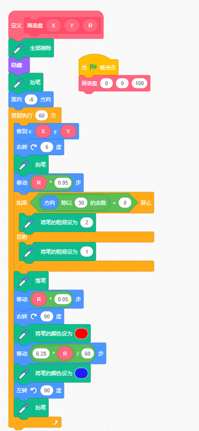 添加红色圆圈、时针刻度加粗。