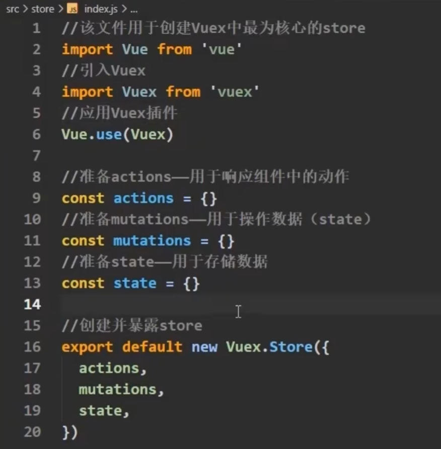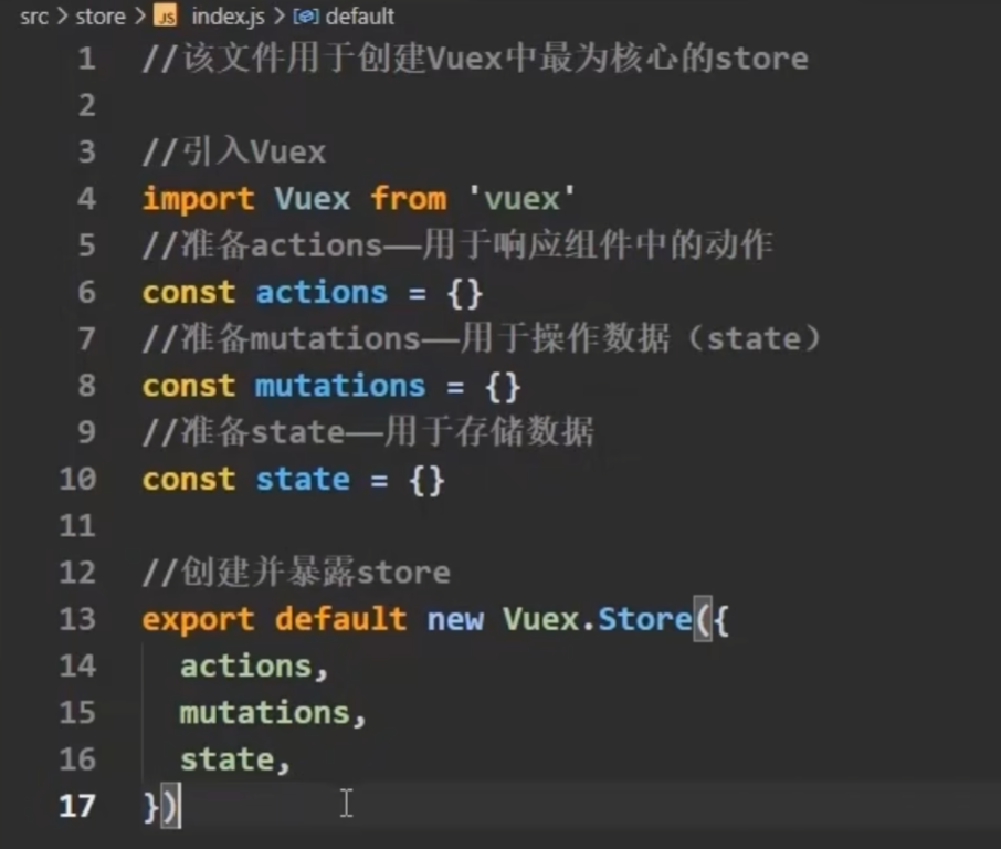4.在Src文件夹中新建一个文件夹store,在里面创建index.js