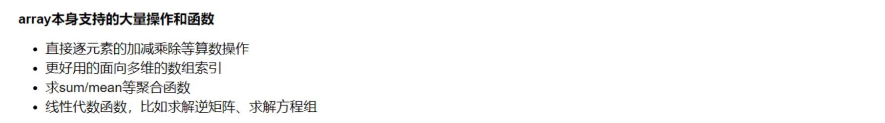 代码更简洁:Numpy直接以数组、矩阵为粒度计算并支持大量的数学函数,而python需要用for循环从底层实现。
