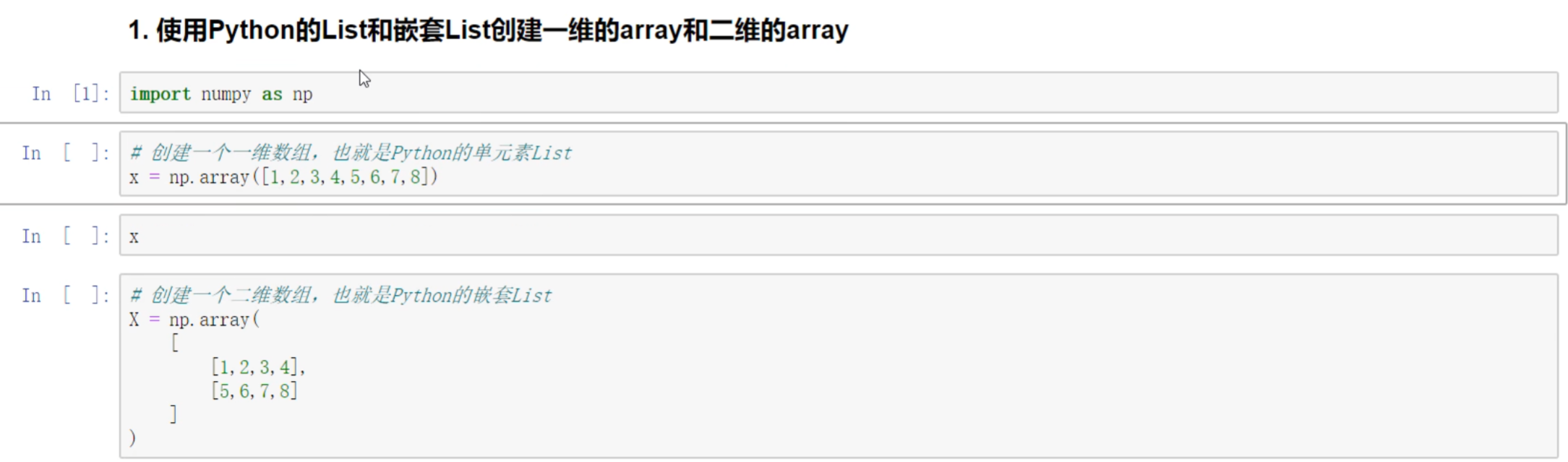一维数组,和python的List一样。如x[2]、x[5],如x[2:4],x[2:-1]等。