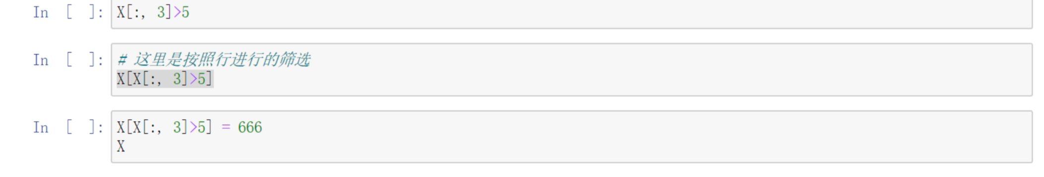 X[:,2]:筛选所有行,然后筛选多列