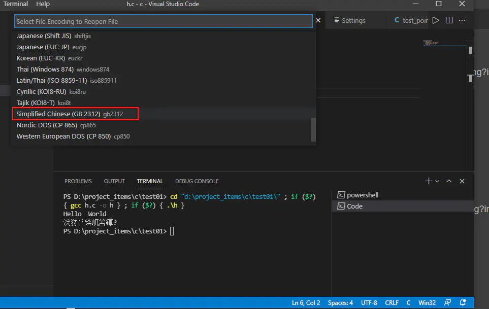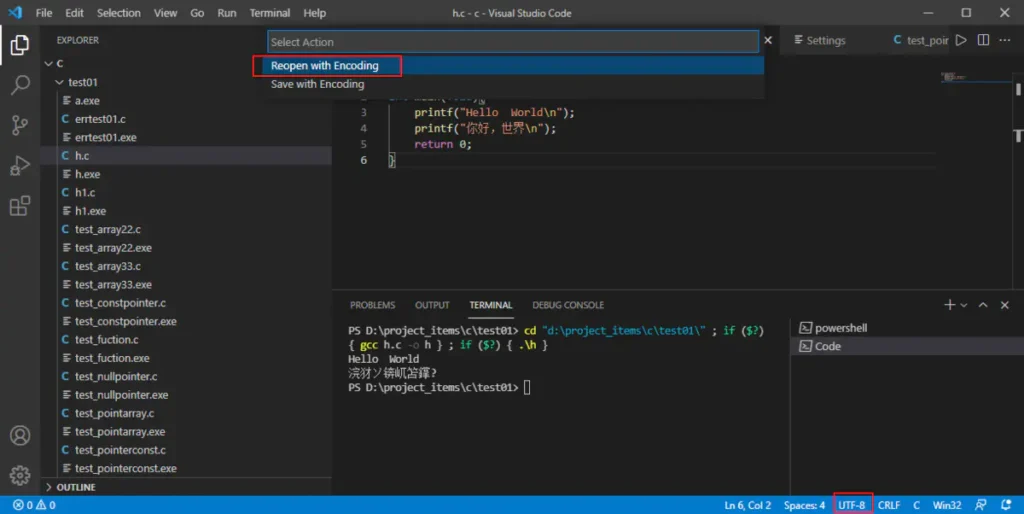 解决方案:点击右下角 utf-8,选择打开 Reopen open with Encoding